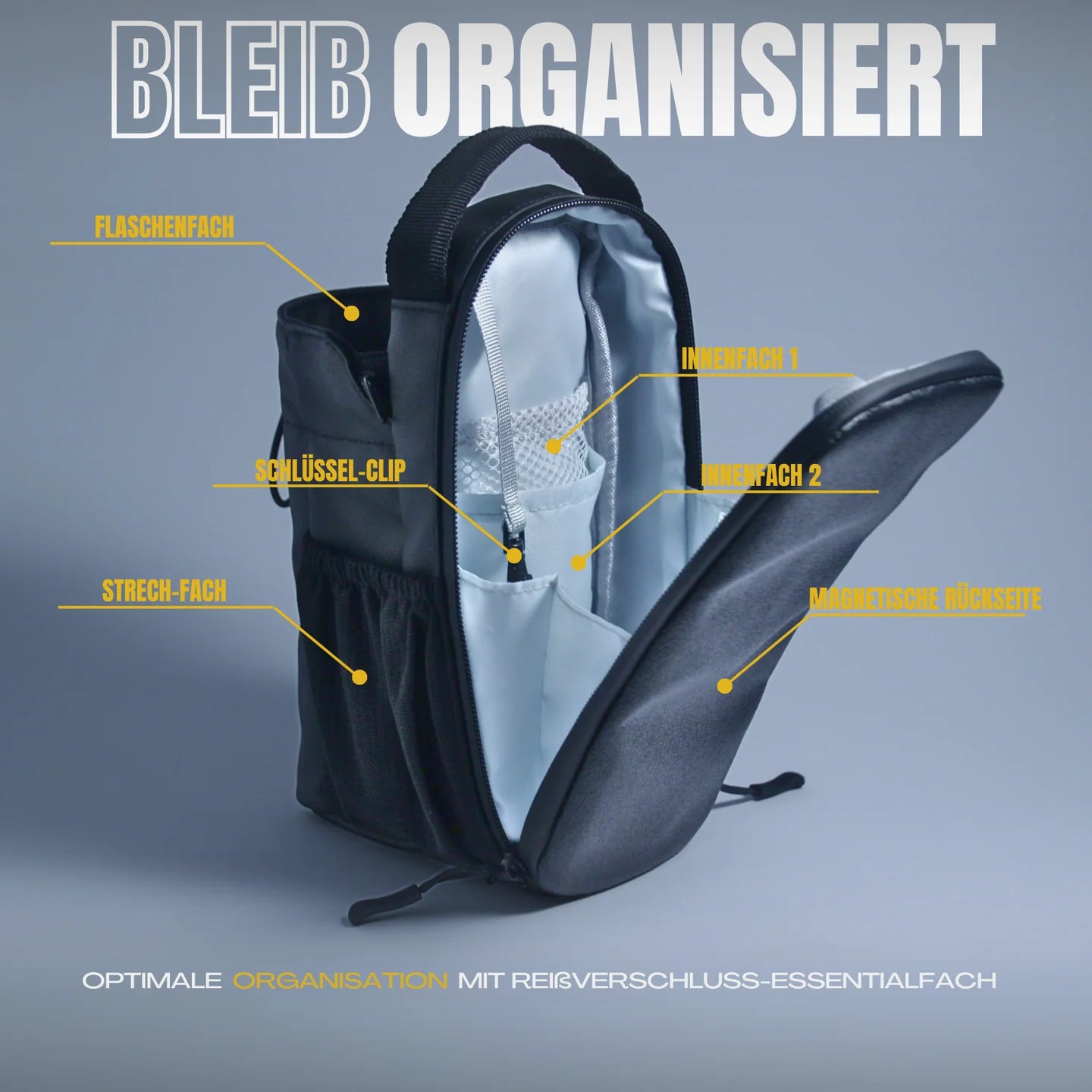 Erlebe maximalen Komfort mit innovativen MagnetoGo Tasche. Die einzigartiges Design und die magnetische Rückseite, ermöglichen dir eine problemlose Befestigung an nahezu all deinen Fitnessgeräten. Halte deine Essentials somit immer griffbereit und fern vom dreckigen Gymboden!